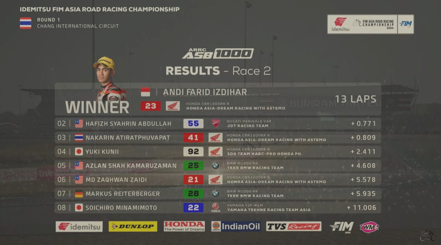 Pelumba Honda Asia-Dream Racing Astemo, Andi Farid Izdihar, menafikan kejuaraan menjadi milik Hafizh Syahrin Abdullah apabila mendominasi Perlumbaan 2 Kejuaraan Motosikal Asia (ARRC) di Litar Antarabangsa Buriram, sebentar tadi.