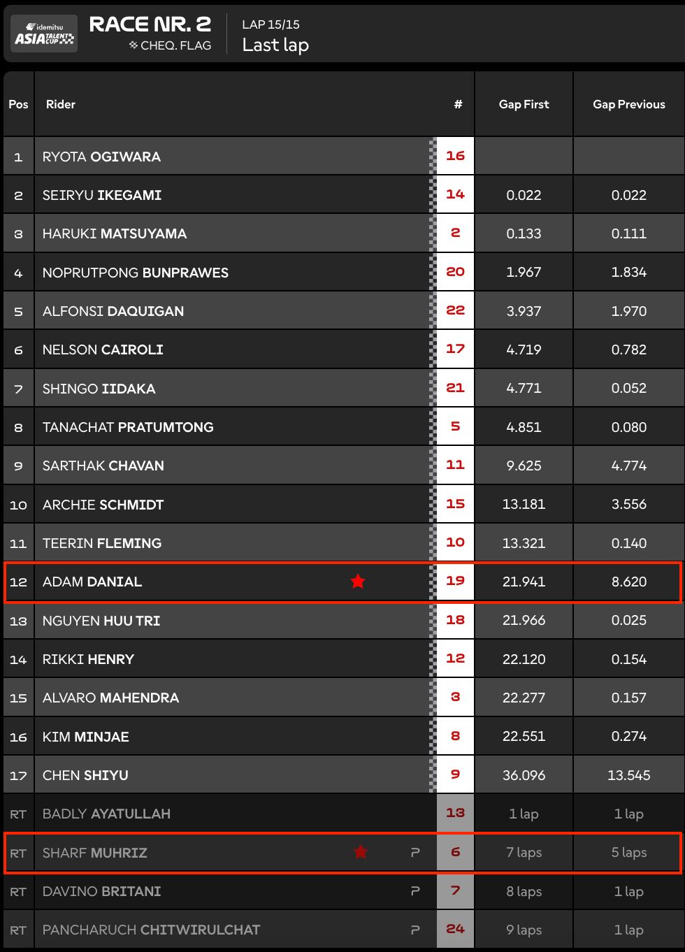 Adam Danial mempamerkan kebangkitan dalam Perlumbaan 2 Asia Talent Cup yang berlangsung di Litar Antarabangsa Buriram,Thailand sebentar tadi.