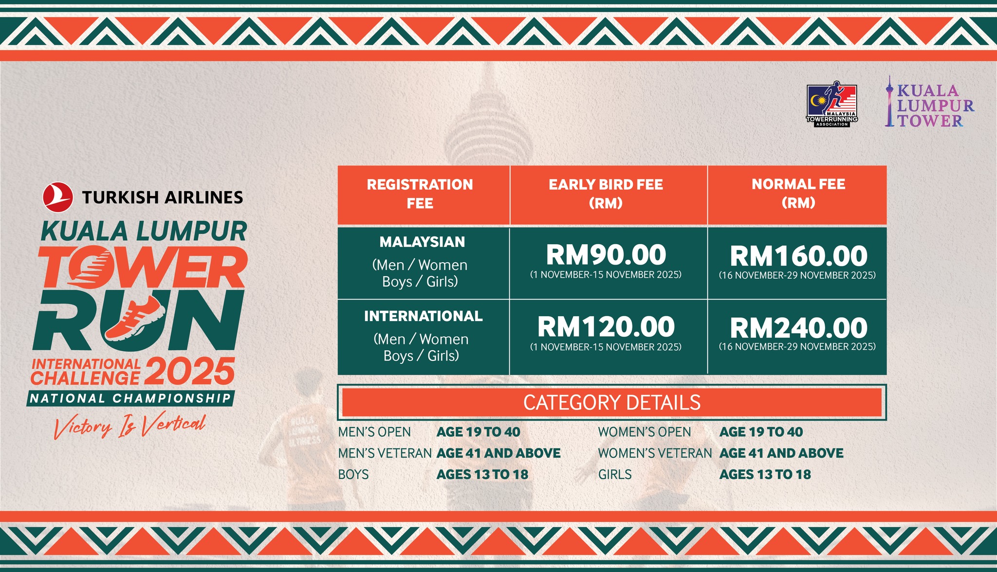 Daftar sekarang di: https://tinyurl.com/KLTowerRunInternational2025