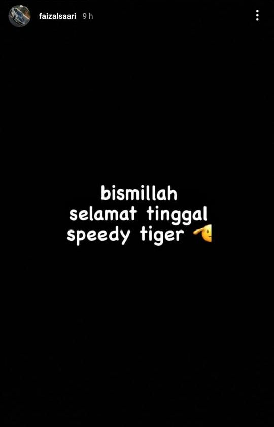 "Bismillah, selamat tinggal Speedy Tigers," tulisnya dalam satu kiriman Instagram Story semalam.