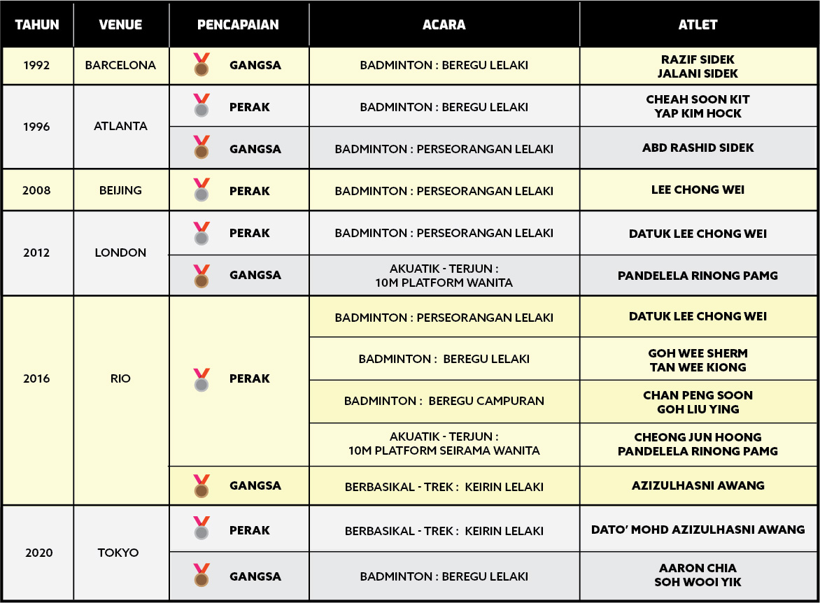 Sedikit trivia, Malaysia tergolong dari lima buah negara ASEAN yang masih belum membutirkan satu pun pingat emas selain Kemboja, Brunei, Myanmar dan Laos.