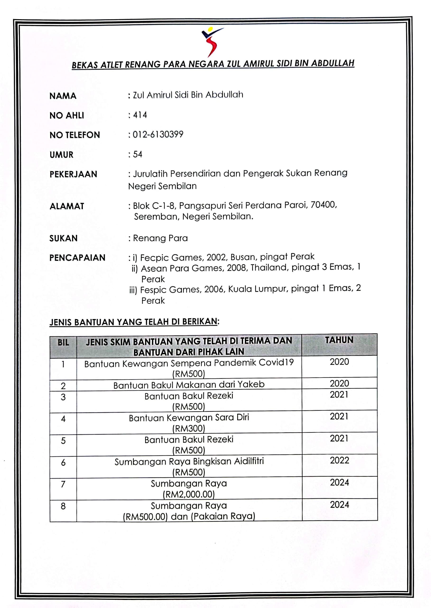 Ia susulan laporan akhbar tempatan tentang rintihan bekas atlet renang para negara, Zul Amirul Sidi Abdullah, 53, menganggap dirinya tersisih.