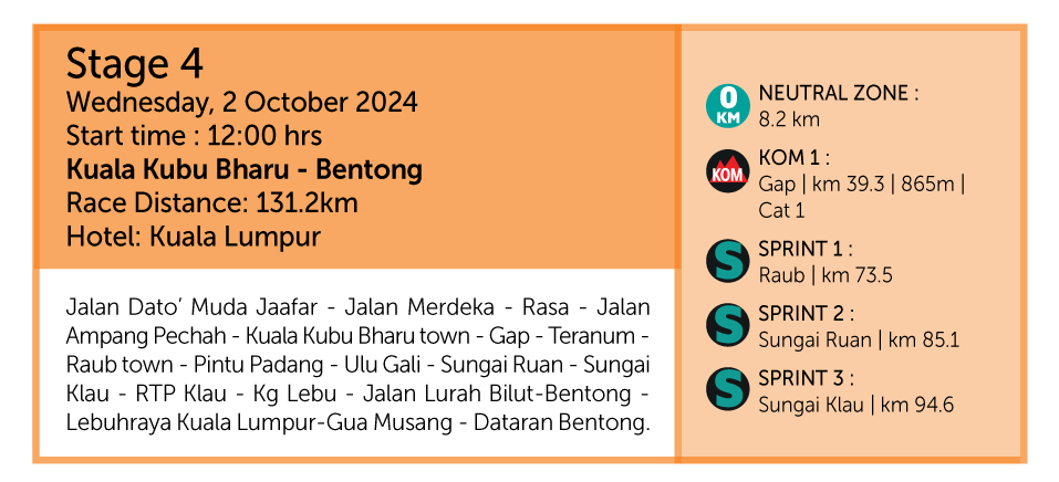 Perlumbaan Peringkat 4 (Kuala Kubu Bharu - Bentong) 131.2km