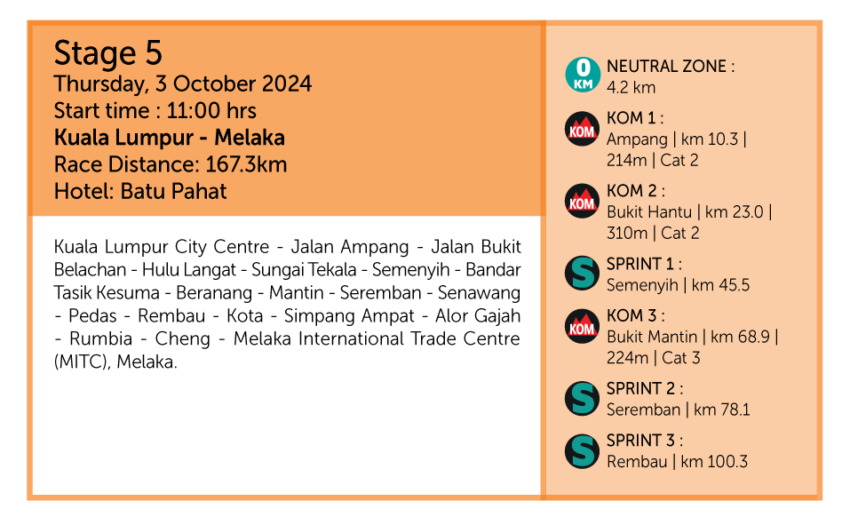Perlumbaan Peringkat 5 (Kuala Lumpur - Melaka) 167.3km