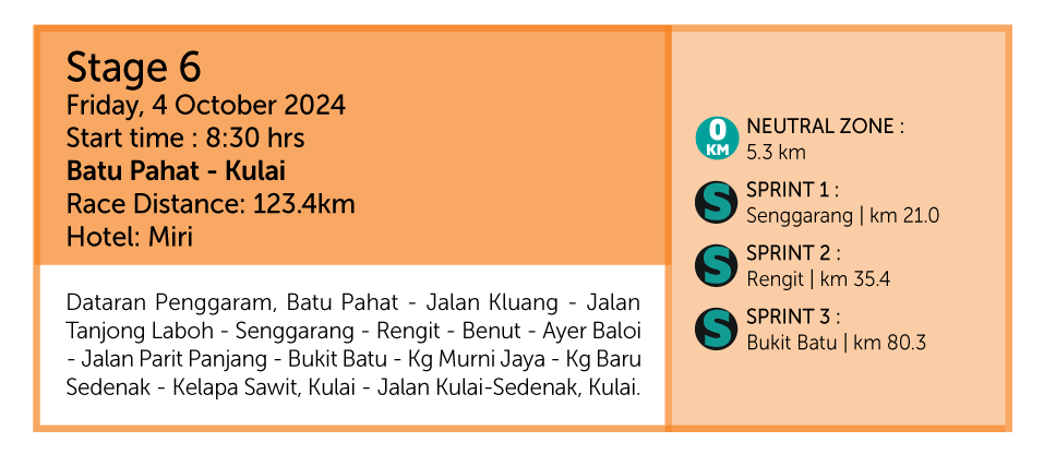 Perlumbaan Peringkat 6 (Batu Pahat - Kulai) 123.4km
