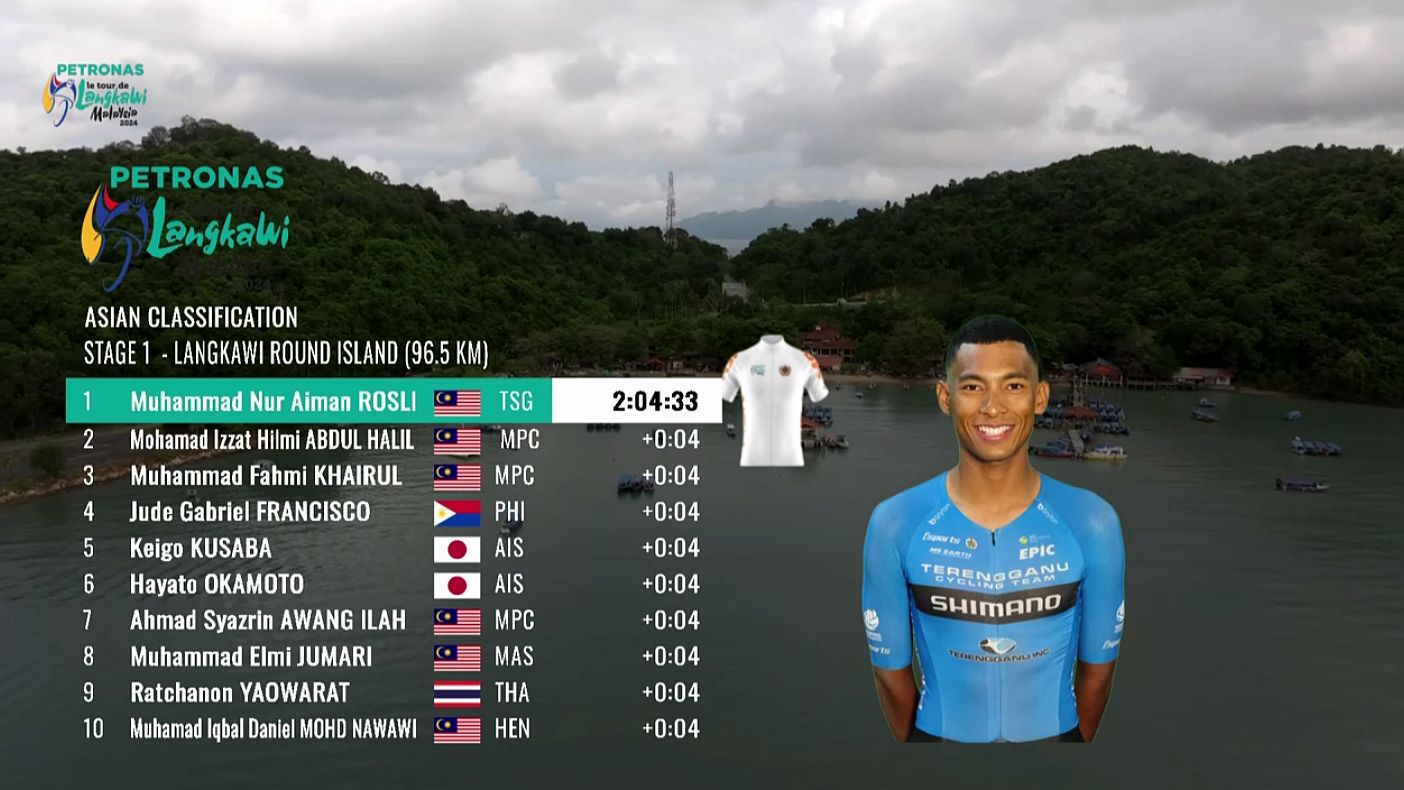 Pelumba Terengganu Cycling Team (TSG), Muhammad Nur Aiman Rosli, memastikan saingan peringkat pertama Le Tour de Langkawi dengan meraih jersi putih.