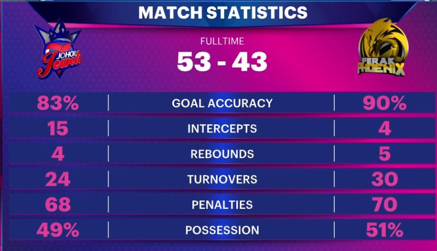 Jurang 10 mata sejak suku pertama menjadi bekalan Johor Jewels untuk menempah tiket ke perlawanan akhir Netball Super League (NSL) 2023 di Stadium Juara, Bukit Kiara, esok.