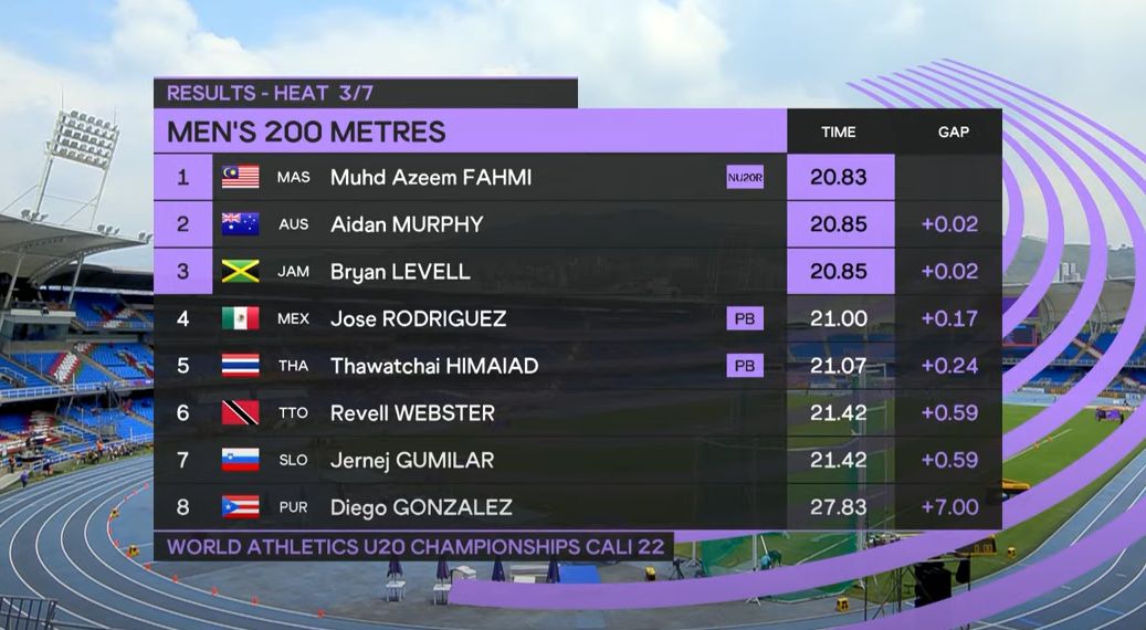 Ia sekaligus menjadi rekod kebangsaan acara 200m yang terbaru bagi kategori bawah 20 tahun.