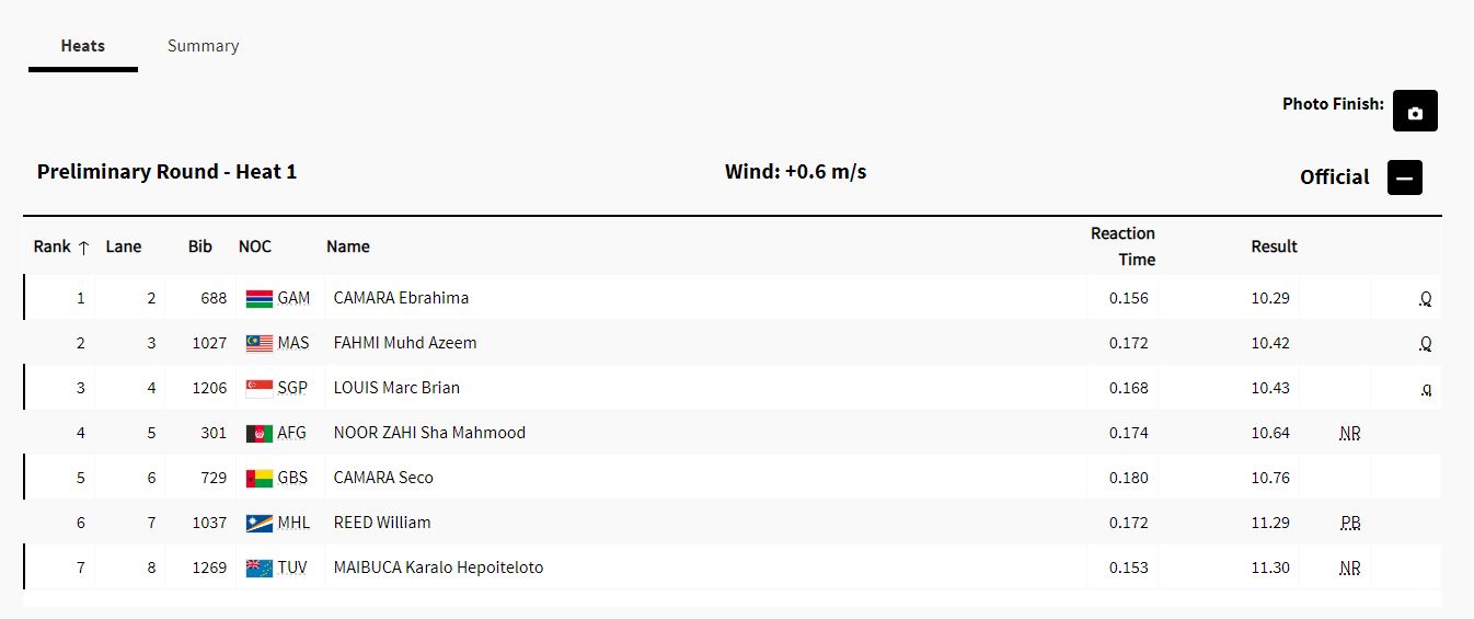 Azeem yang menamatkan saringan pertama pusingan kelayakan di tempat kedua dengan catatan 10.42s, akan turun ke balapan sekali lagi bagi pusingan 1.