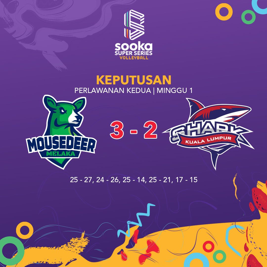 Hari kedua Sooka Super Series Volleyball Malaysia 2022 menyaksikan Melaka Mousedeer mempamerkan kebangkitan luar biasa untuk menyekat Kuala Lumpur Shark dalam aksi sengit 3-2, hari ini.