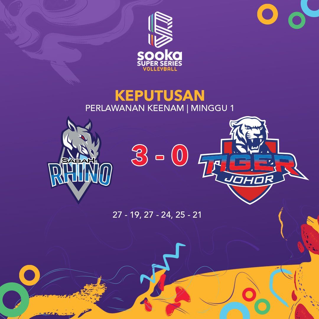 Sabah Rhino tiada masalah untuk merakamkan kemenangan kedua Sooka Super Series Volleyball Malaysia 2022 apabila menjinakkan Johor Tiger.