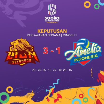 Selangor Lion lulus ujian pertama Sooka Super Series Volleyball Malaysia 2022 walaupun berdepan kejutan dalam set pertama ketika bertemu Amelia Indonesia, sebentar tadi.