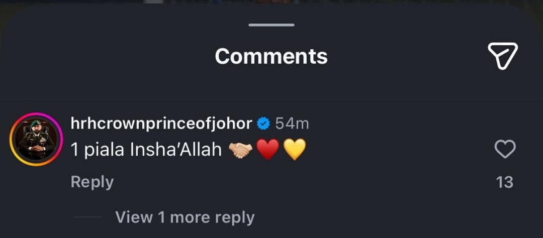 Dalam salah satu gambar yang dikongsikan di media sosial peribadinya, Pemangku Sultan Johor, Tunku Ismail Sultan Ibrahim, turut menitip doa sempena kepulangannya ke dalam barisan Gergasi Lembah Klang itu dengan menulis, "1 piala Insha'Allah."