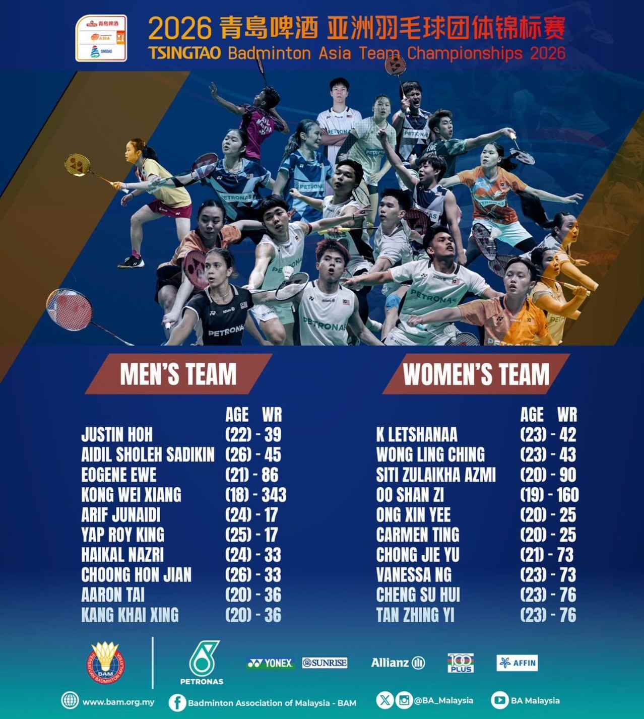 Skuad negara turut tidak menyenaraikan perseorangan utama lelaki, Leong Jun Hao, selain ketiadaan wakil beregu lelaki yang menghuni kelompok 10 terbaik dunia.