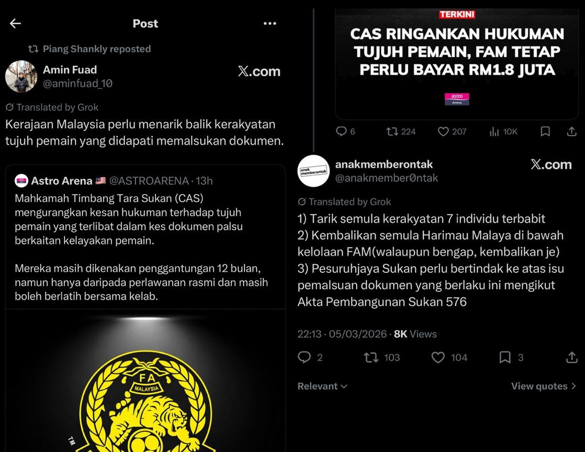 Malah, majoriti peminat di sosial media mula mempersoal tentang ketelusan proses kewarganegaraan yang diberikan, sekali gus mendesak pihak berwajib supaya menarik semula kerakyatan mereka.