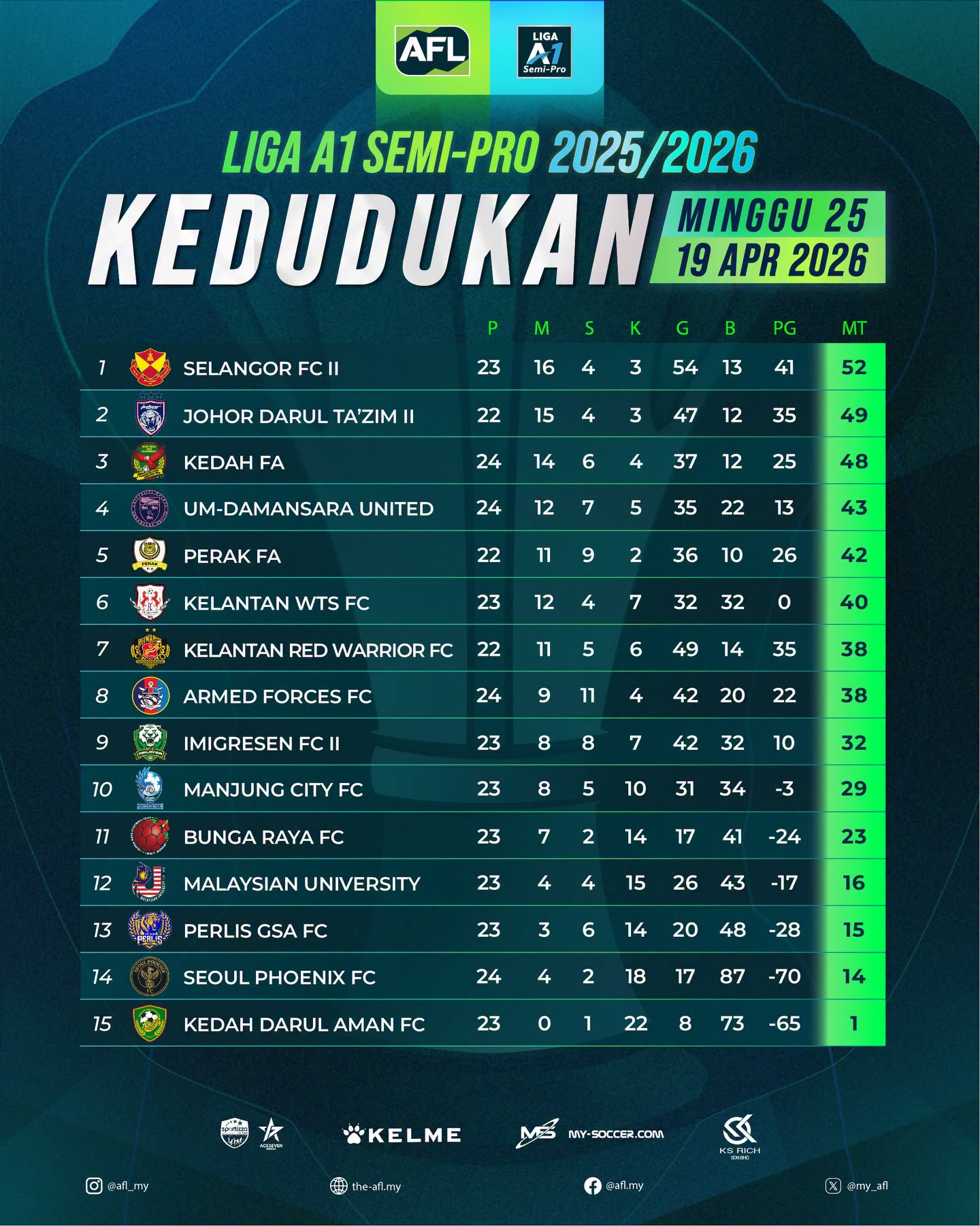 Kemenangan itu meletakkan Selangor II kini berada di tangga teratas dengan 52 mata, hanya dipisahkan tiga mata dengan pencabar terdekat JDT II yang berkelebihan satu perlawanan.