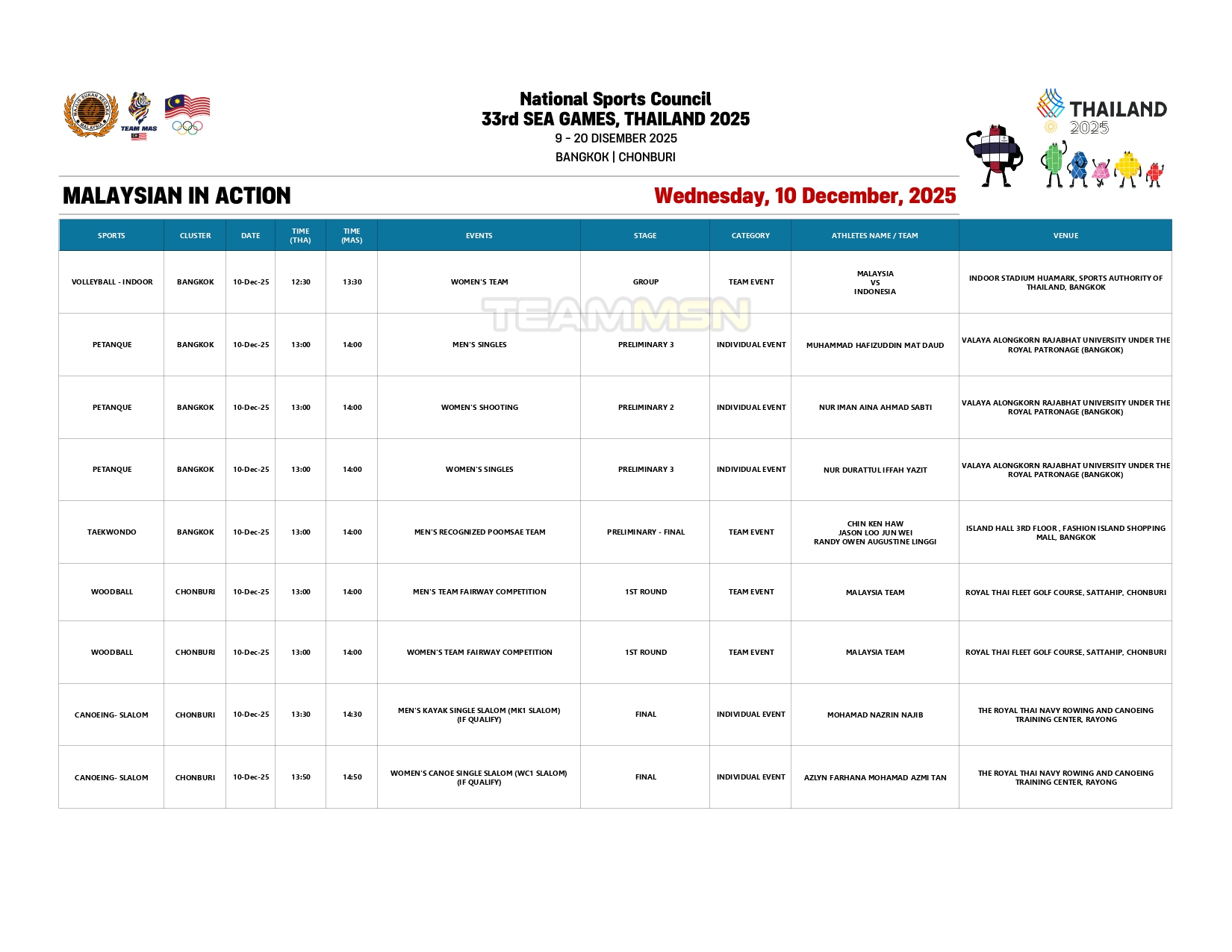 Kontinjen negara akan meneruskan pemburuan pingat pertama Sukan SEA Thailand 2025 dalam saingan hari kedua temasya itu hari ini.