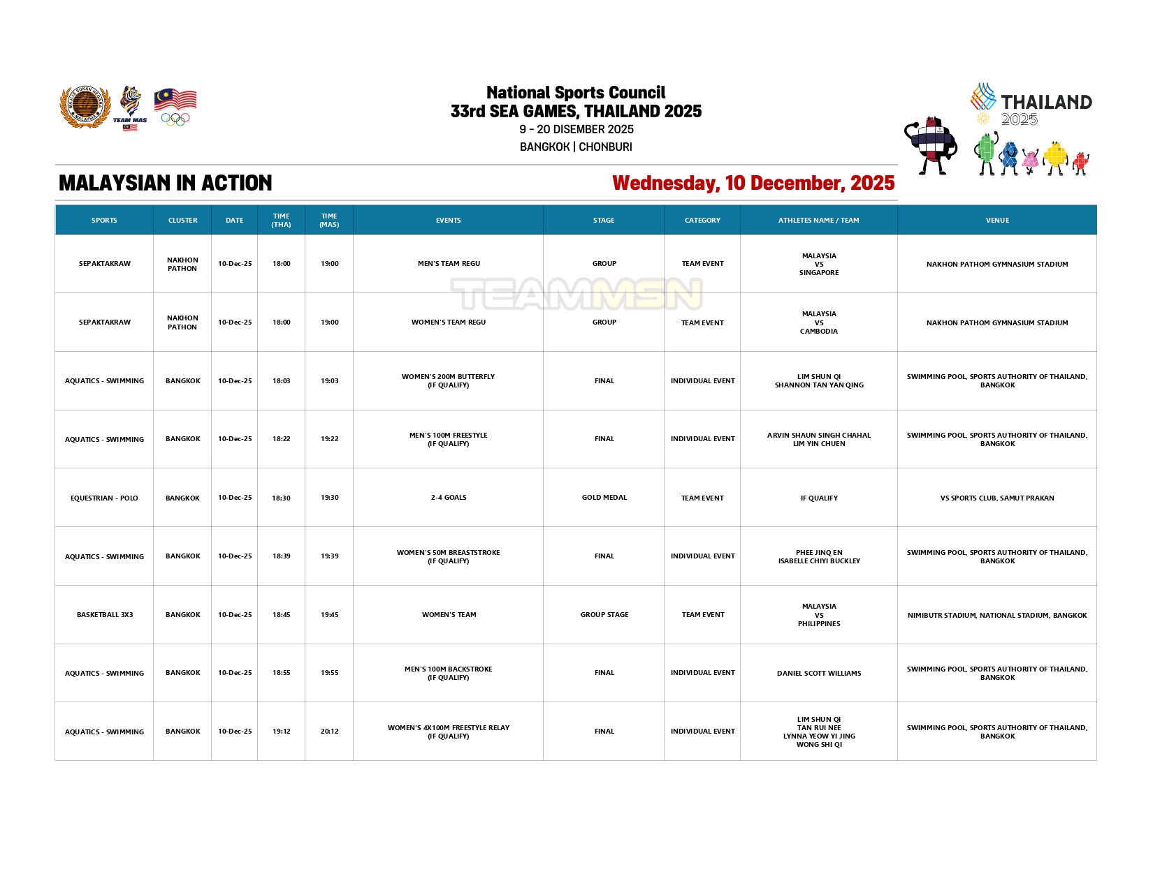 Selain itu, skuad polo negara juga akan bertemu Filipina bagi perlawanan penentuan pingat gangsa di Bangkok pada jam 5.00 petang ini.