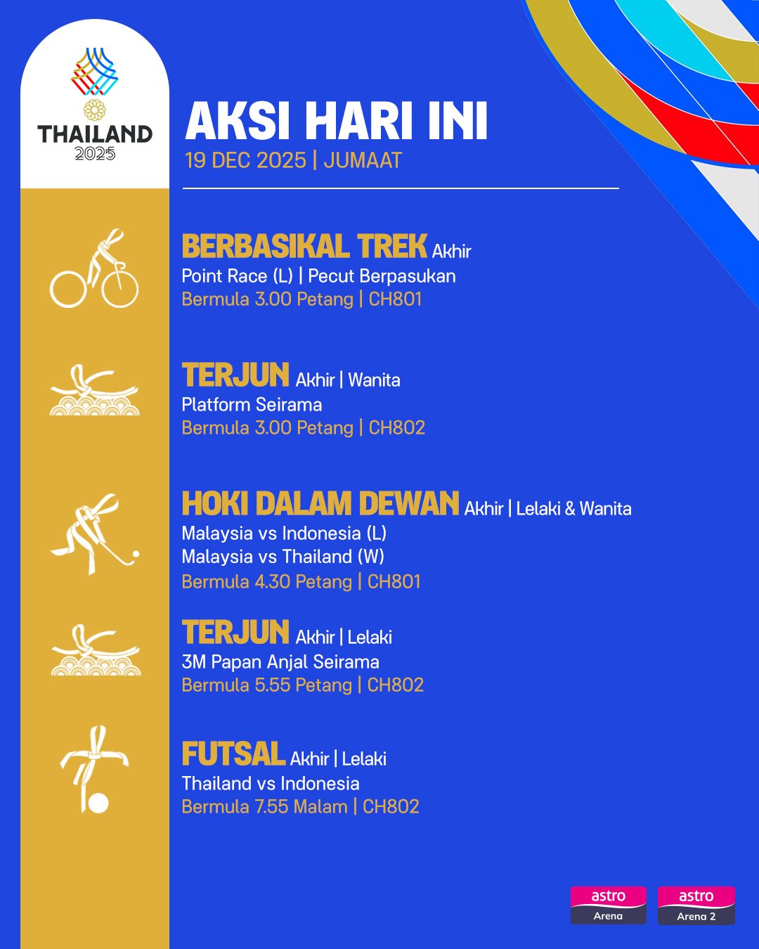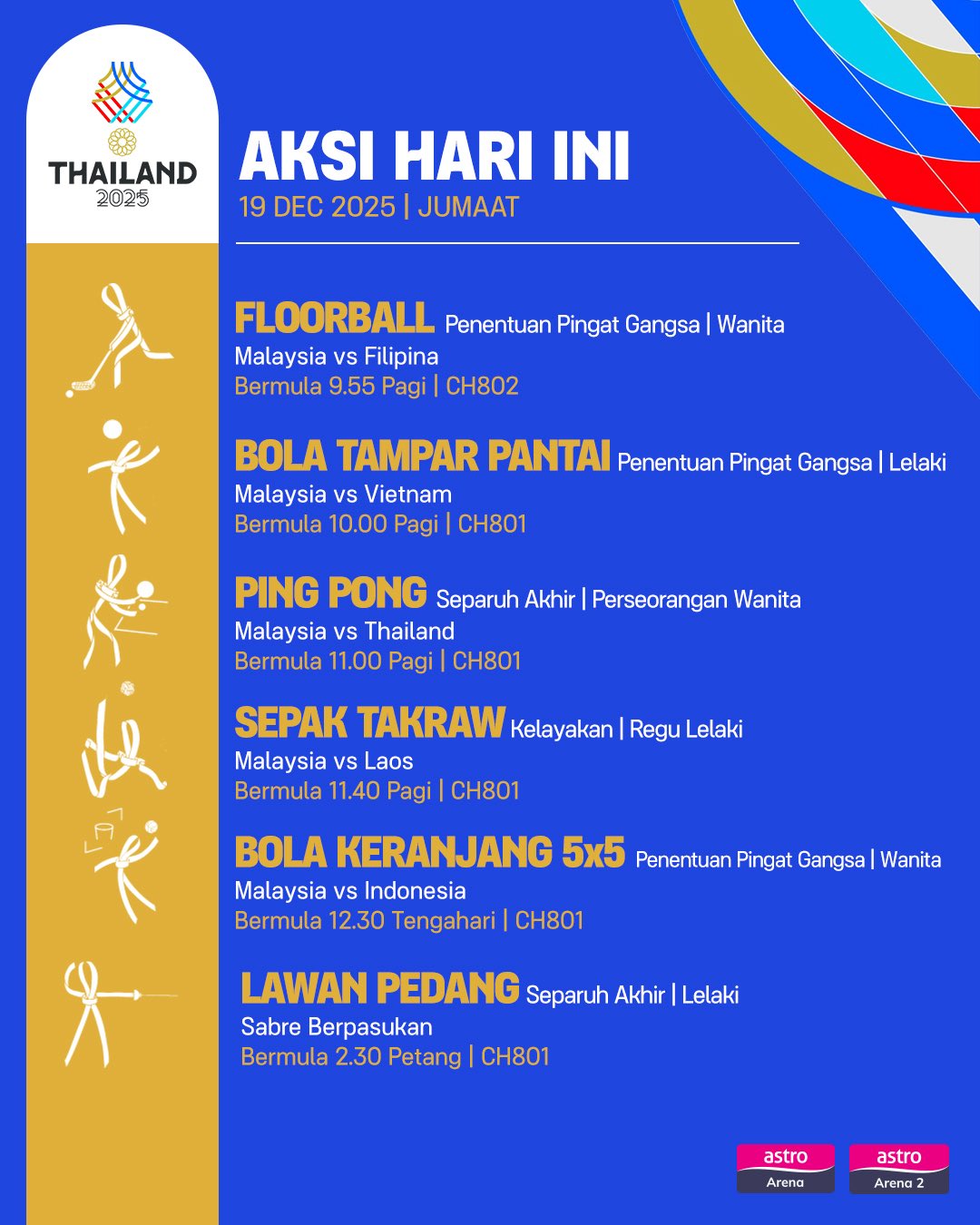 Teruskan bersama Astro Arena untuk saksikan perjuangan atlet negara di Bumi Thailand.
