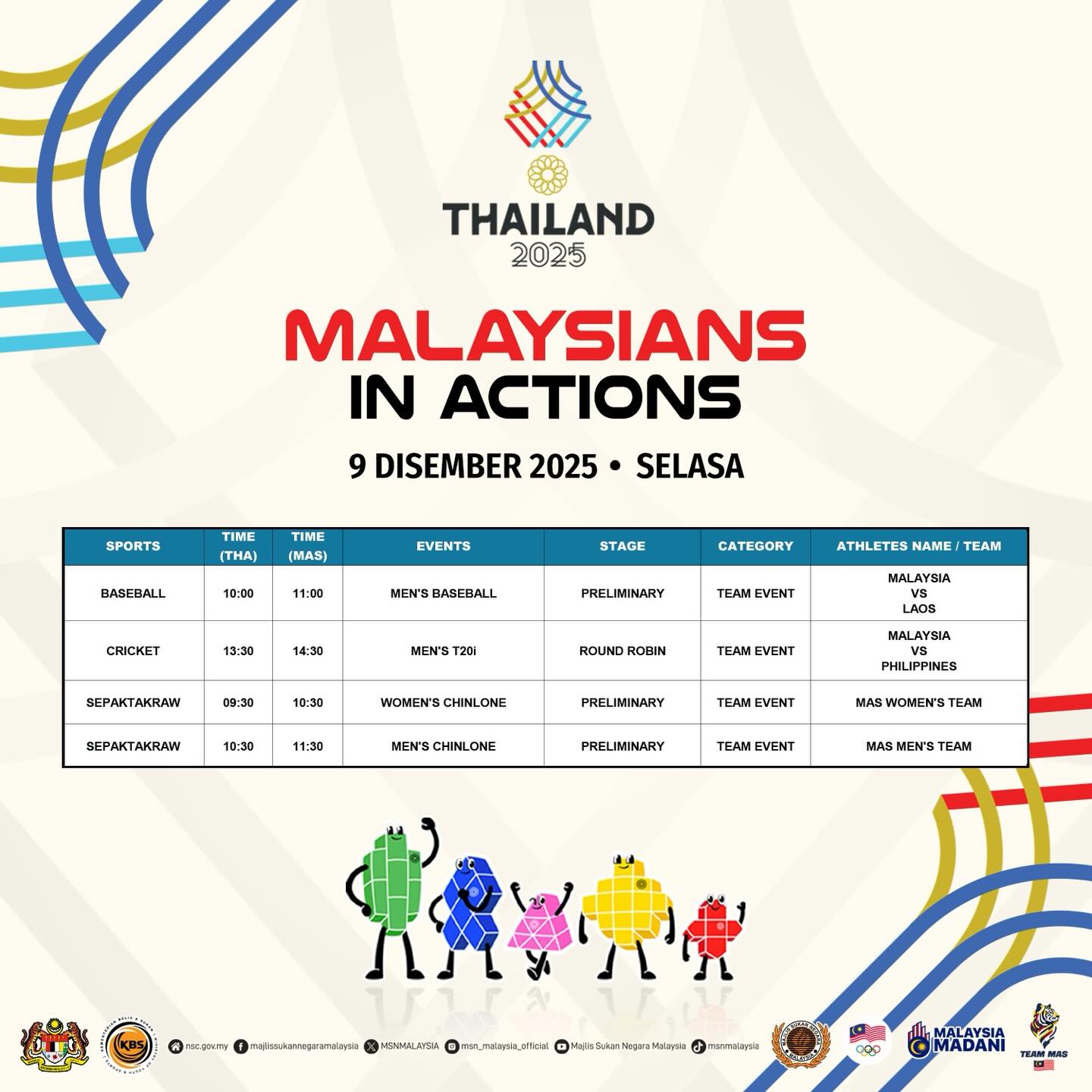 Menjelang upacara pembukaan Sukan SEA Thailand 2025 malam ini, atlet negara akan bersaing dalam tiga jenis sukan sepanjang hari ini.