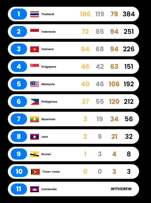 Malaysia melalui hari paling cemerlang dalam Sukan SEA Thailand dengan memungut 11 pingat emas.
