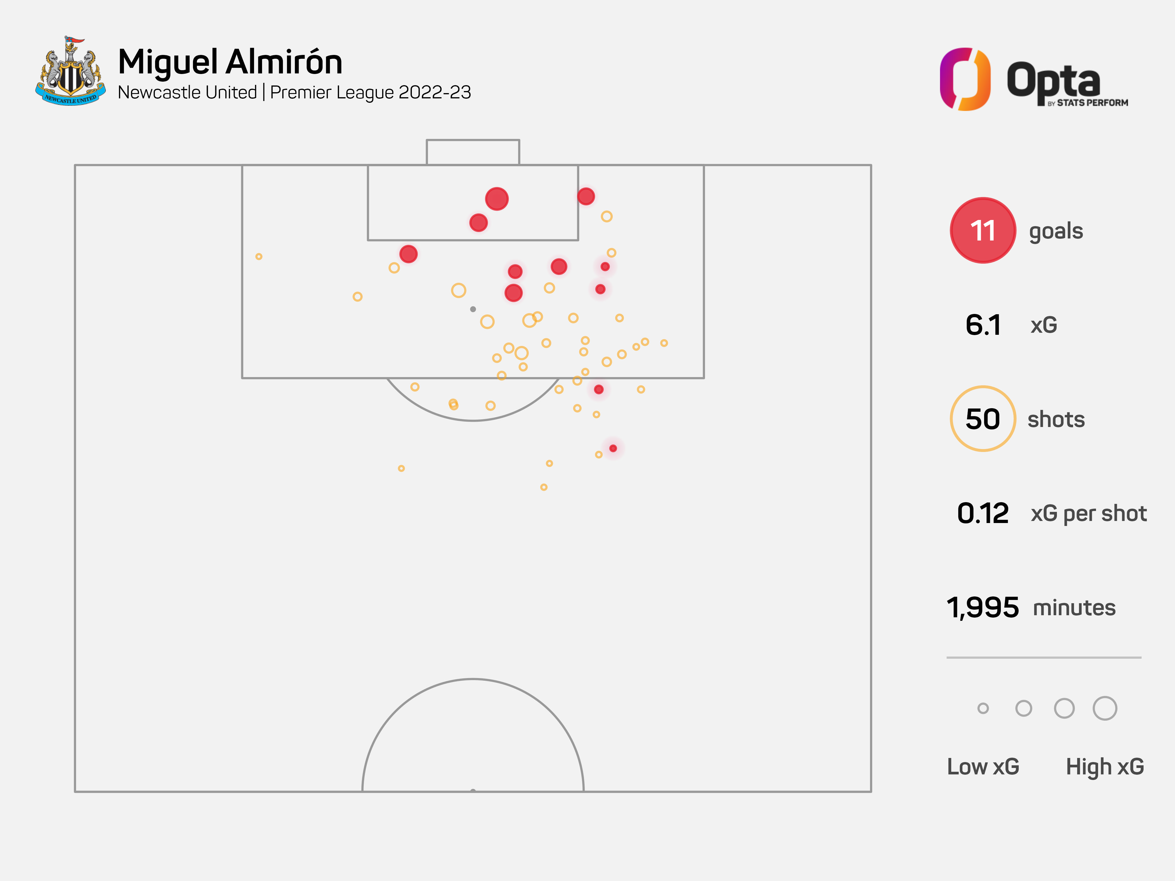 Almiron ialah penjaring terbanyak Newcastle United, setelah menjaringkan 11 gol dalam musim terbaik dalam karier Liga Perdana Inggeris.